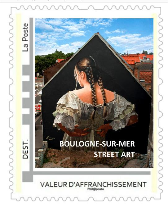 Mais de plus, Boulogne étant une ville richement ornée de fresques, l’APB a fait imprimer par la poste 2 timbres personnalisés reprenant les œuvres du Boulonnais Bruno Ghys (cheval boulonnais rue du Chemin vert) et l’œuvre du Chilien Javier Barraga (rue de Bréquerecque) ainsi que 2 cartes postales de ces œuvres. L’ensemble sera disponible sur place ou par correspondance. Demande de renseignements : frederic-hablot@hotmail.fr ou michel.poultier@wanadoo.fr